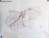 Op de muur hangt, voor iedereen zichtbaar, een grote kaart met daarop alle putten en sonderingen in de regio.