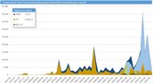 In deze grafiek is de enorme toename van de hoeveelheid gegevens te zien die het Bronhouderportaal verwerkt. In het begin (2017-2018) verwerkte het Bronhouderportaal gemiddeld ca. 400 transacties per maand, met af en toe een piek van 1000. Daarna tot halverwege 2021 ging het nog om gemiddeld zo’n 3.000 tot 4.000 registratieobjecten. Aan het eind van 2021 is dat gegroeid naar 10.000. Inmiddels zitten we nu op ruim 40.000 registraties per maand. Vergeleken met het begin is dat 100 keer zoveel. Deze toename zit met name in de levering van archiefgegevens van grondwaterstanden.
