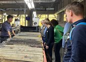 In de lunchpauze verzorgde geoloog Ronald Harting een rondleiding in de beschrijfruimte van de Geologische Dienst. Een ruimte vol tafels met boorkernen en spoelmonsters, waar medewerkers de inhoud en structuur van sedimenten karakteriseren. Dat biedt inzicht in de kenmerken van de Nederlandse ondergrond.